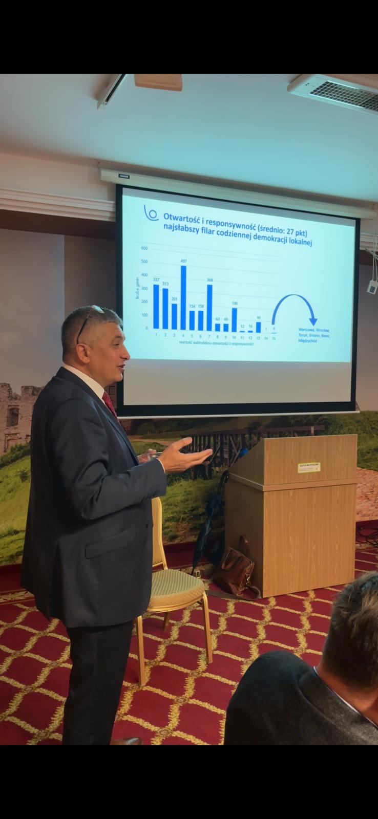 Jednym z kluczowych punktów programu była prezentacja „Indeksu Codziennej Demokracji Lokalnej”, opracowanego przez Fundację im. Stefana Batorego. Ruch Samorządowy TAK! Dla Polski aktywnie włączył się w tę część spotkania — Przemysław Kubicki, szef mazowieckiej struktury Ruchu, przedstawił praktyczne zastosowania indeksu w pracy samorządów, podkreślając jego znaczenie dla lepszego rozumienia potrzeb mieszkańców oraz wyzwań stojących przed lokalnymi wspólnotami.